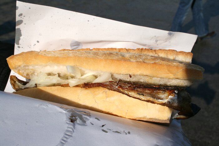 サバを鉄板で焼いてパンに玉ねぎとサンドしただけのファストフード。