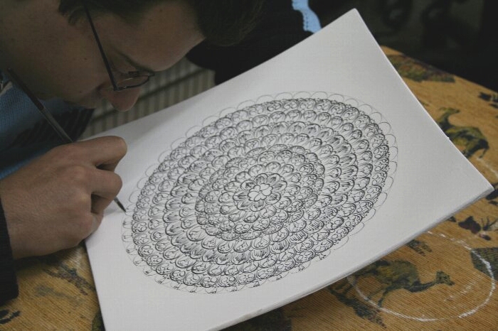 まず下地に模様を描いていき、その後色を塗ります。
