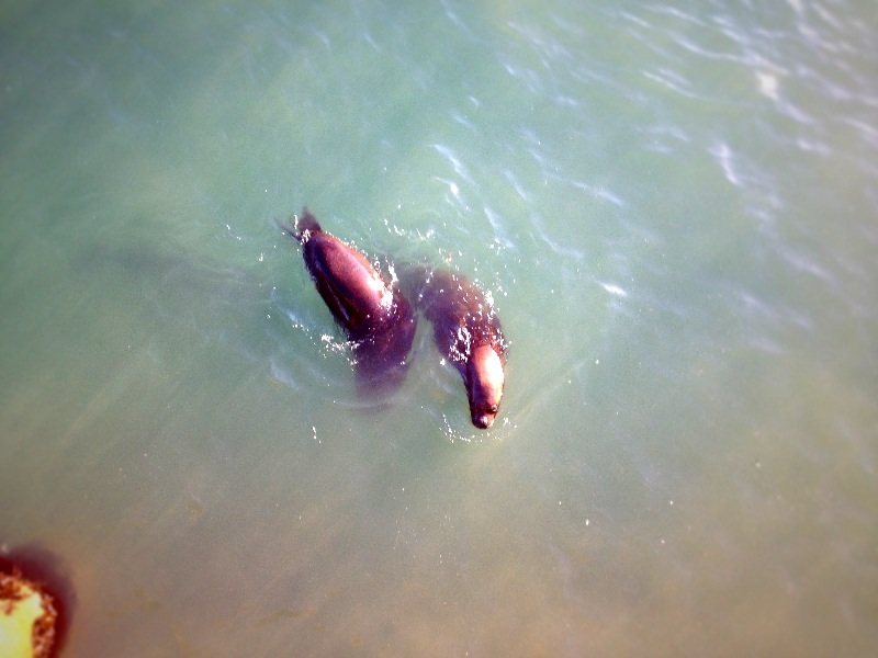 港の海には沢山のカモメとアザラシ!