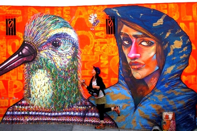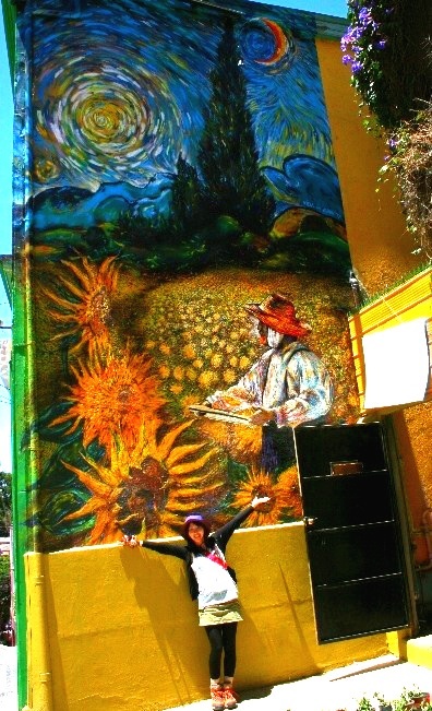 壁一面に絵が描かれた「青空美術館」。