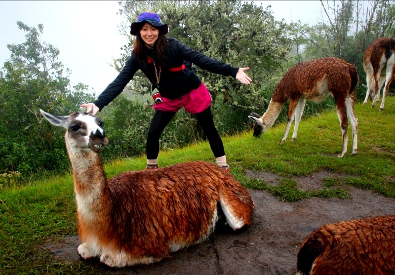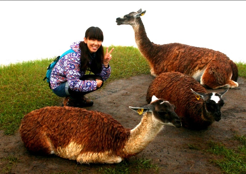 しばしリャマと戯れる姉妹…