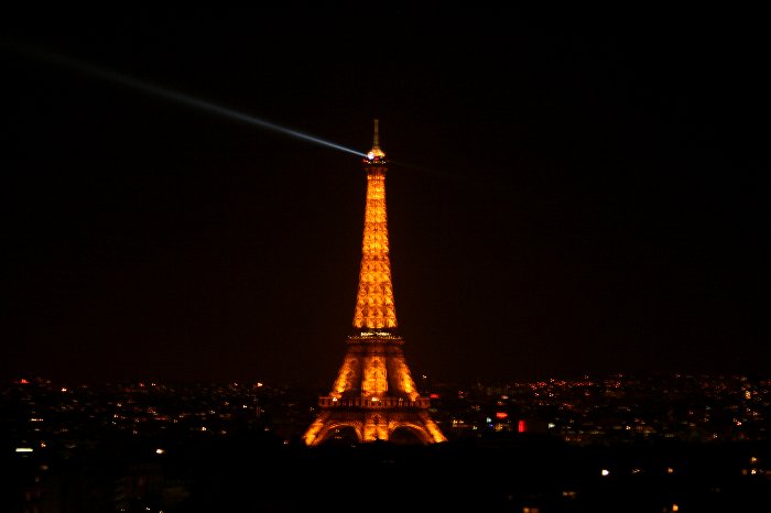 毎時間00分から10分間キラキラ、キラキラ光るエッフェル塔は