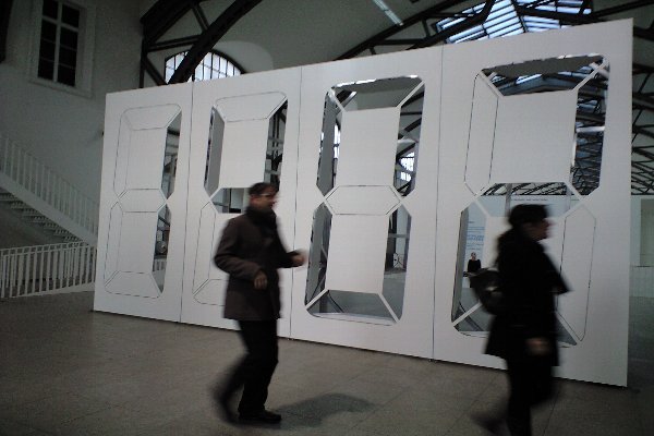 入ってすぐの巨大デジタル時計。