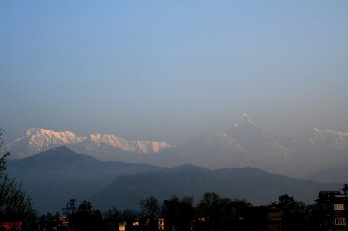 宿の窓からヒマラヤがうっすら見えました。