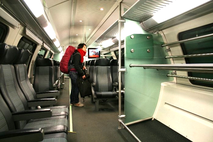 片道8ユーロは高いけど、車内は広くてかなり快適。