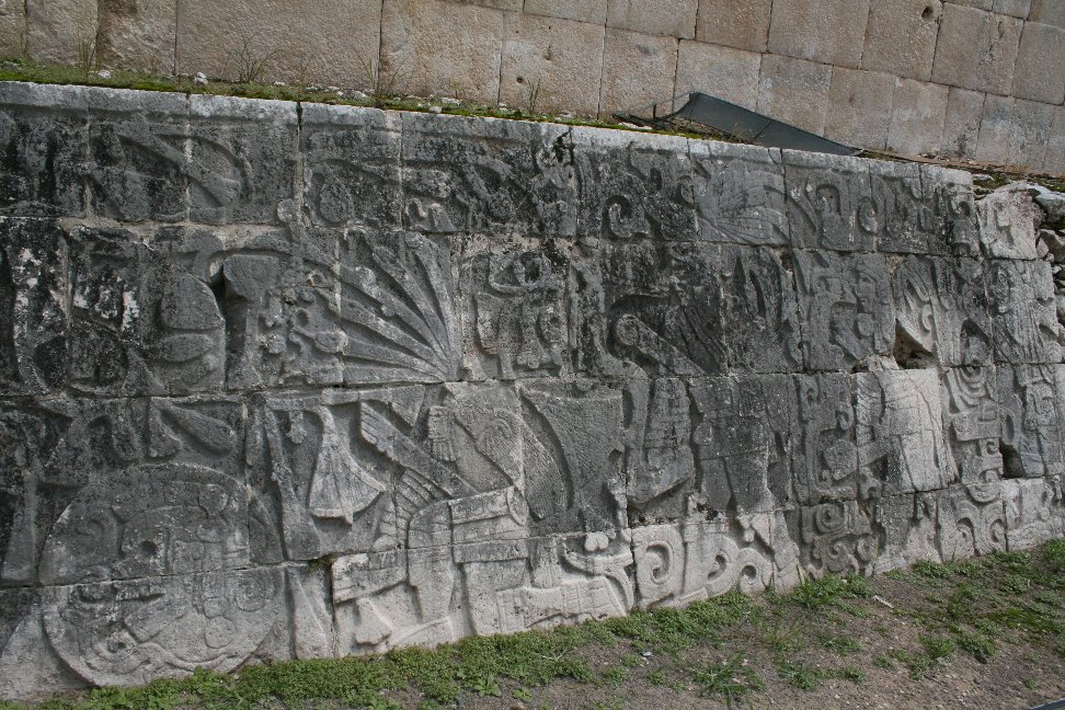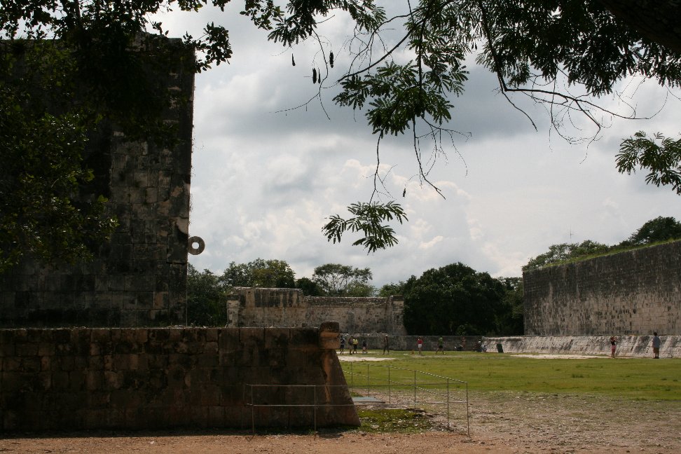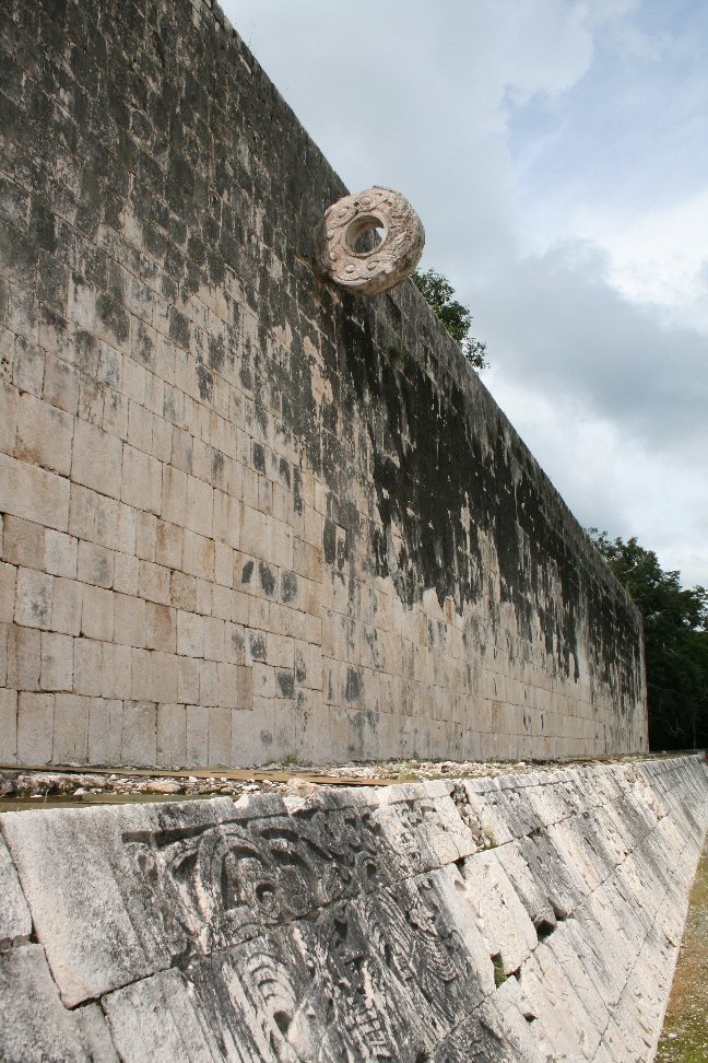 古代マヤでは、ゴムボールを写真の左にある輪に入れる
